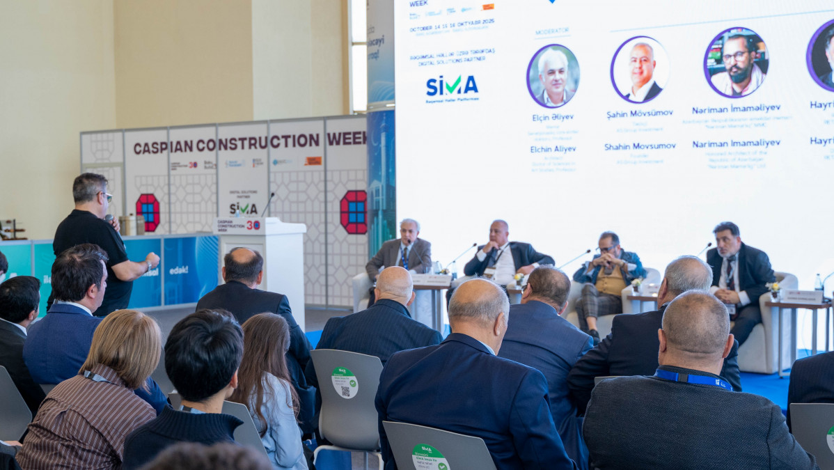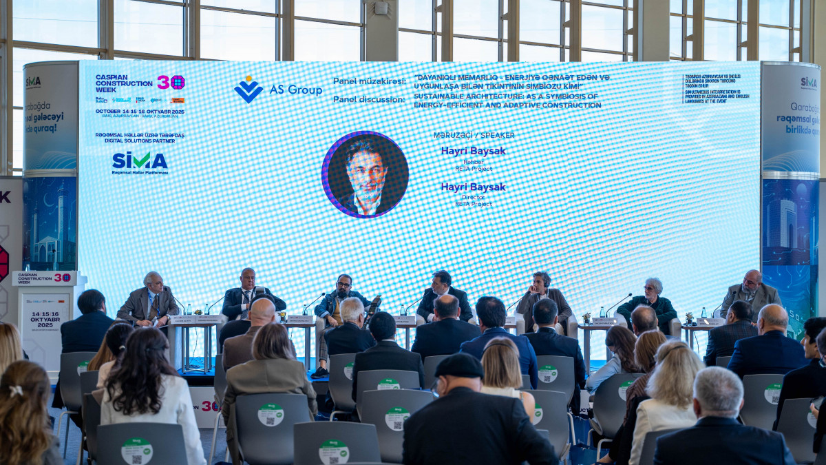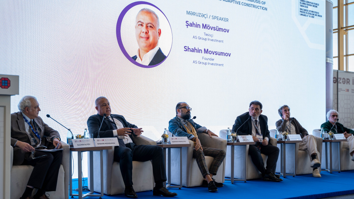 Первая панельная сессия, прошедшая под модераторством доктора искусствоведения, профессора Эльчина Алиева, была посвящена теме «Устойчивая архитектура — симбиоз энергоэффективного и адаптивного строительства». В ней приняли участие: основатель “AS Group” Шахин Мовсумов, заслуженный архитектор Нариман Имамалиев, руководитель компании “RETA Project” Хайри Байсак, основатель “Giorgi Khmaladze Architects” Георгий Хмаладзе, архитектор Назим Фераджзаде и заместитель директора ООО “AS İnşaat” Эмре Карабулут.