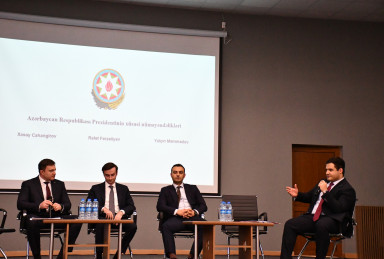 Bu təqdimatların davamı olaraq, tədbir çərçivəsində “Qarabağ və Şərqi Zəngəzur iqtisadi rayonlarında yaşıl enerji zonası konsepsiyası”, “yaşıl enerji” yanaşması üzrə görülmüş işlər və gələcək planlar ətrafında müzakirələr aparılıb.